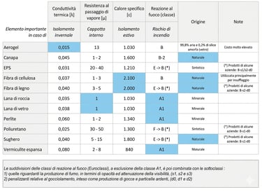 Ci sono vari sistemi e prodotti per coibentare un edificio, cioè proteggerlo dal caldo e/o dal freddo. Nella tabella in basso i materiali più utilizzati e le loro proprietà chimico-fisiche.